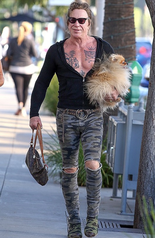 Ο Μίκι Ρουρκ, όμως, έχει αλλάξει καi το στιλ του, υιοθετώντας ένα αρκετά νεανικό στιλ, με ανοιχτά ντεκολτέ, στενά τζιν και... γυναικείς τσάντες.